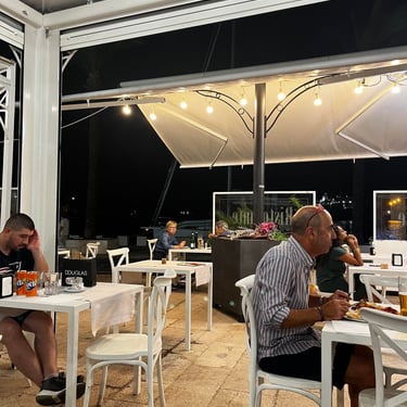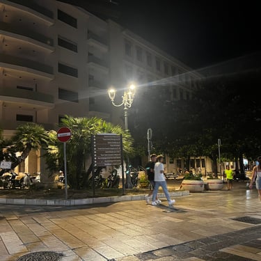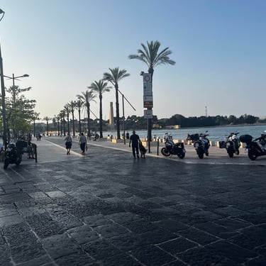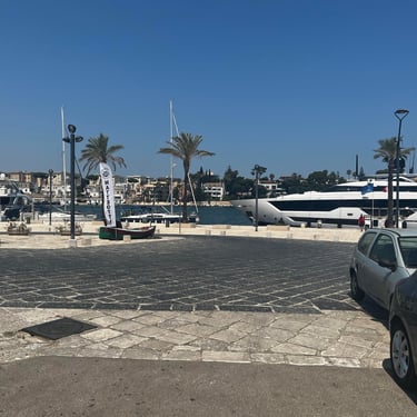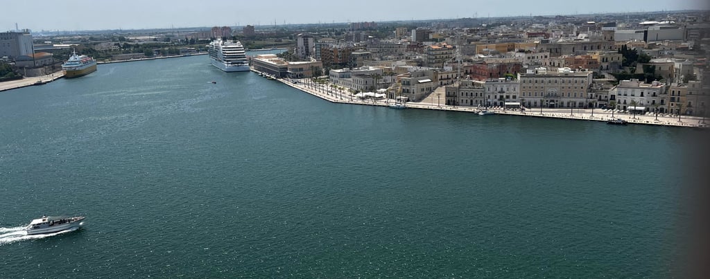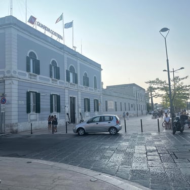 Nous avons pu apprécier ces deux villes sous plusieurs aspects. Mais c'est Brindisi qui nous a permis grâce à sa grande tour datant de la seconde guerre mondiale d'avoir une vision plus gobale de la ville. Et les photos nous permettent davantage d'apprécier la beauté qu'elle a pu nous offrir avec ce recul "photographique". Encore une fois, beauté, exotisme, classe et authenticité sont de mise, nous permettant d'explorer les recoins de notre lieu de villégiature sous toutes ses coutures. Greffées à ces vues du port qui laissent rêveur, j'ai trouvé bon d'insérer quelques photos plus "terre à terre". l'atmosphère d'un restaurant près du port lors d'un banal diner estival, ou encore, le quartier de la gare agrémenté de ses palmiers... Ledit quartier qui était d'ailleurs délesté de ses habitants pour cause de sieste (Photo prise en plein milieu d'après-midi).