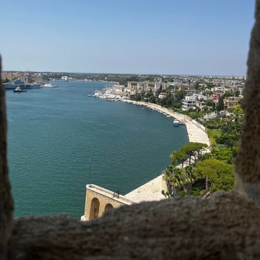 On enchaine sans plus attendre sur ce qui est le poumon de Brindisi. Arpenter des rues anonymes, découvrir le côté féérique du port de cette ville qui est reconnaissable parmi des milliers. Sentir le dépaysement à travers les devantures des maisons et magasins pittoresques du sud de L'italie sans avoir l'impression de subir un afflux tourisque qui dénaturerait cette cité. A l'instar de cette cabine téléphonique perdue dans les années 80, ou ce mini ferry qui fait la traversée entre les deux rives principales de la ville bleue (la mer parait effectivement si pure et d'une aura si colorée), toutes les conditions sont réunies pour nous en envoyer plein les mirettes. Sa grande soeur (Lecce) n'est pas en reste non plus, se faufilant aisément dans ce panorama.